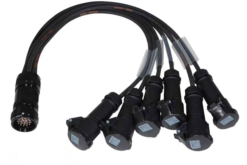 Home ELECTRICAL & TOOLS Custom Mains Cables Socapex Compatible Multicores and Spiders Multilock Male Spider To 6 x 16A Sockets All Black